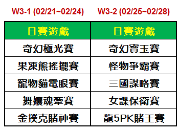 Ø 日賽(2/25-2/28)