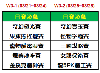 Ø 日賽(3/21-3/24)