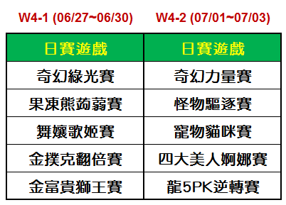 1. 活動期間於競賽館指定日賽遊玩,可以獲得積點,累積4日總積點來進行排名,達成名次可獲得對應獎勵