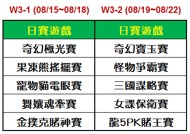 1. 活動期間,玩家遊玩指定日賽遊戲(如下表)不限單筆押注額,每投注或中獎1金幣=1積分(含副遊戲),達成積分排名名次即可獲得對應獎勵,各遊戲分別以排行榜計算,每日00:00重新計算積分。