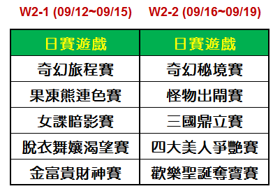 | 16217 | 2023-09-12 | 【活動】黃金嘉年華-金秋爭霸賽-日賽&四日賽(09/12-09/19) |
