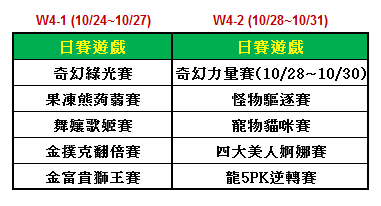 1. 活動期間於競賽館指定日賽遊玩,可以獲得積點,累積4日總積點來進行排名,達成名次可獲得對應獎勵