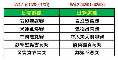 | 16604 | 2025-01-28 | 【活動】黃金21年-新年迎新賽-日賽&四日賽(01/28-02/03) |