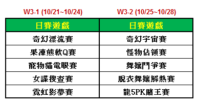 1. 活動期間,玩家遊玩指定日賽遊戲(如下表)不限單筆押注額,每投注或中獎1金幣=1積分(含副遊戲),達成積分排名名次即可獲得對應獎勵,各遊戲分別以排行榜計算,每日00:00重新計算積分。