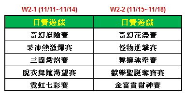 1. 活動期間,玩家遊玩指定日賽遊戲(如下表)不限單筆押注額,每投注或中獎1金幣=1積分(含副遊戲),達成積分排名名次即可獲得對應獎勵,各遊戲分別以排行榜計算,每日00:00重新計算積分。