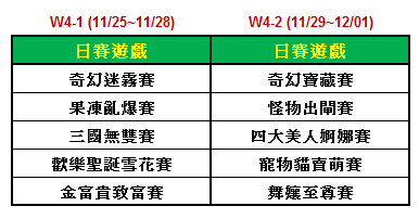 1. 活動期間於競賽館指定日賽遊玩,可以獲得積點,累積4日總積點來進行排名,達成名次可獲得對應獎勵