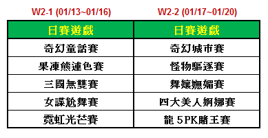 1. 活動期間,玩家遊玩指定日賽遊戲(如下表)不限單筆押注額,每投注或中獎1金幣=1積分(含副遊戲),達成積分排名名次即可獲得對應獎勵,各遊戲分別以排行榜計算,每日00:00重新計算積分。