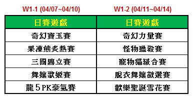 1. 活動期間,玩家遊玩指定日賽遊戲(如下表)不限單筆押注額,每投注或中獎1金幣=1積分(含副遊戲),達成積分排名名次即可獲得對應獎勵,各遊戲分別以排行榜計算,每日00:00重新計算積分。