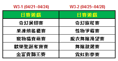 1. 活動期間於競賽館指定日賽遊玩,可以獲得積點,累積4日總積點來進行排名,達成名次可獲得對應獎勵